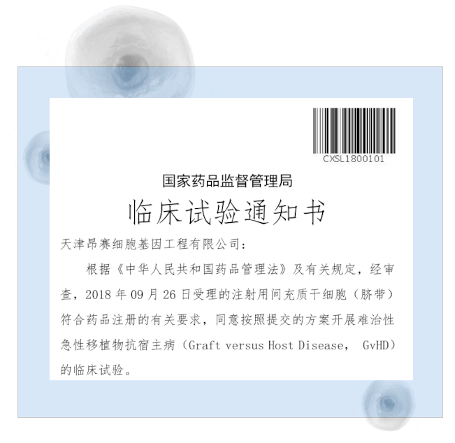 2025年11月3日, 天津昂賽細(xì)胞基因工程有限公司申報(bào)的注射用間充質(zhì)干細(xì)胞(臍帶)治療難治性急性移植物抗宿主病(aGvHD)兒童患者的適應(yīng)癥獲得國家藥品監(jiān)督管理局臨床試驗(yàn)?zāi)驹S可